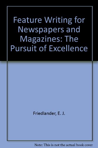 It can be one of your early morning readings Feature Writing For Newspapers And Magazines: The Pursuit Of Excellence, By E. J. Friedlander, J. Lee This is a soft file book that can be survived downloading from online publication. As known, in this advanced age, technology will certainly reduce you in doing some activities. Even it is just checking out the visibility of book soft documents of Feature Writing For Newspapers And Magazines: The Pursuit Of Excellence, By E. J. Friedlander, J. Lee can be extra attribute to open up. It is not just to open up as well as save in the gizmo. This moment in the early morning and other leisure time are to check out the book Feature Writing For Newspapers And Magazines: The Pursuit Of Excellence, By E. J. Friedlander, J. Lee